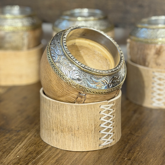 Mate Torpedo Imperial (Calabaza y cuero crudo) - Virola Alpaca Cincelada
