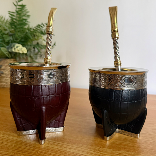 Mate Imperial (Calabaza) con Cuero Labrado - Virola Alpaca Cincelada